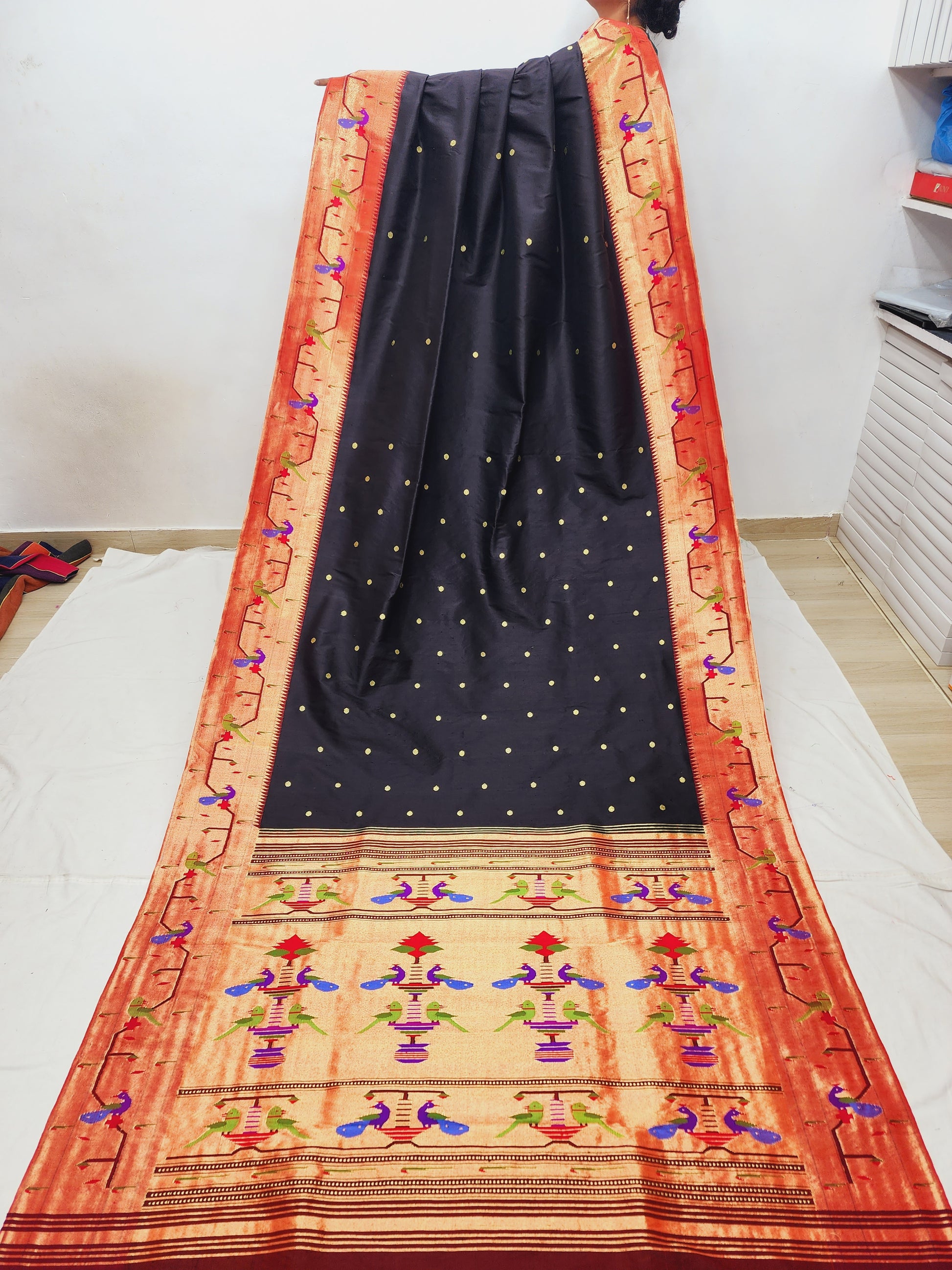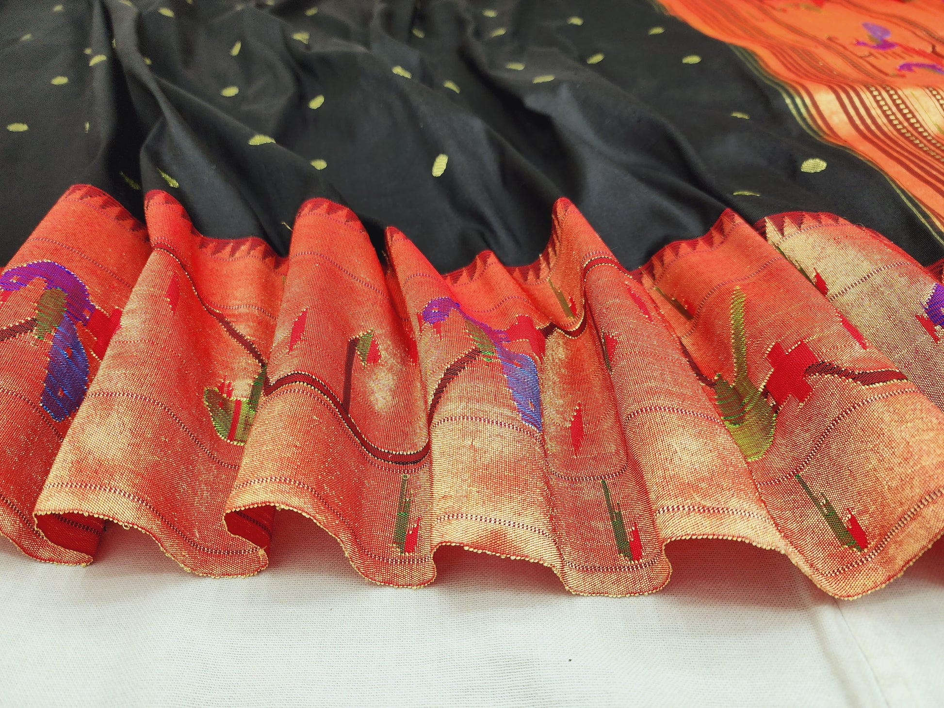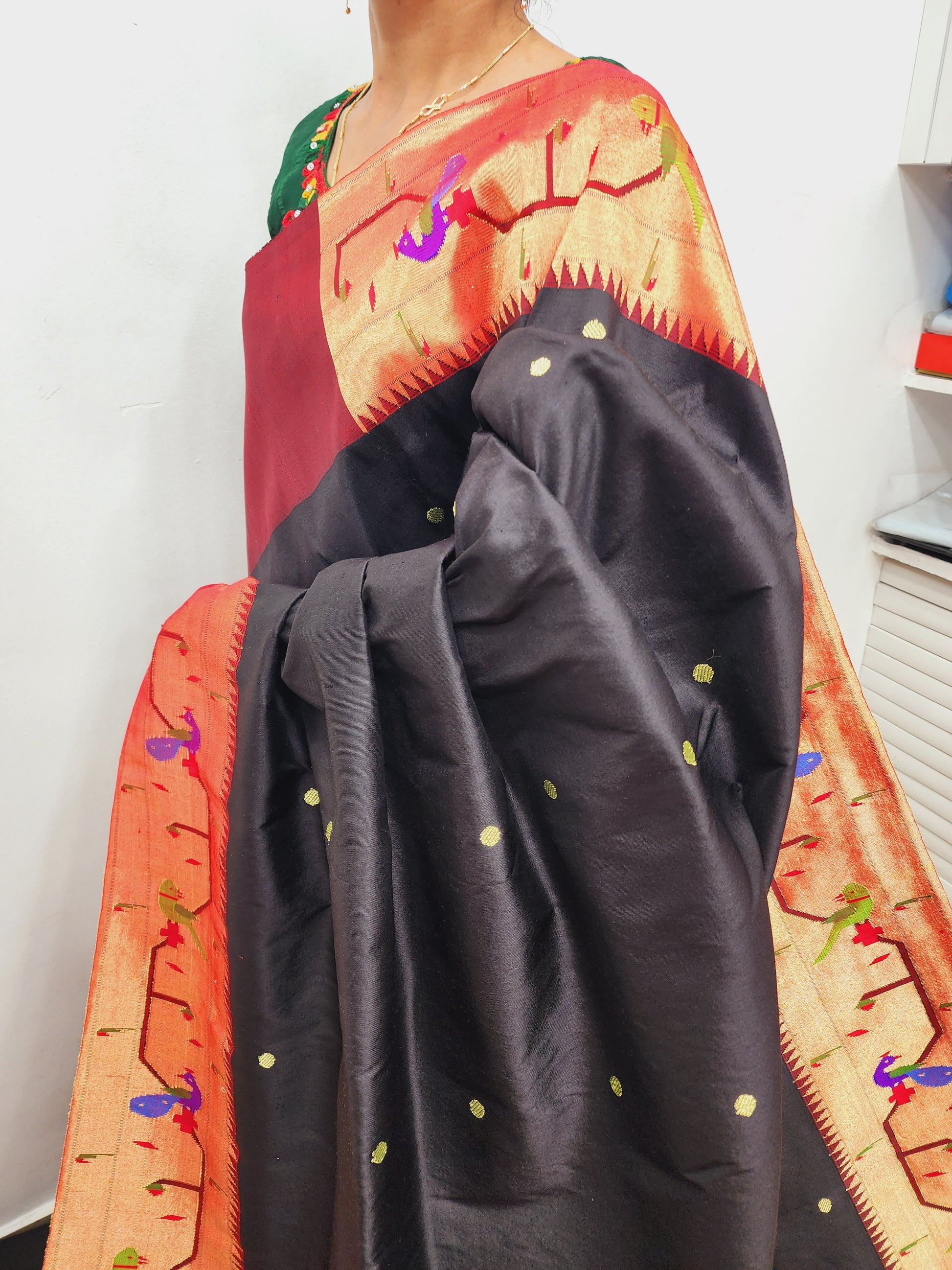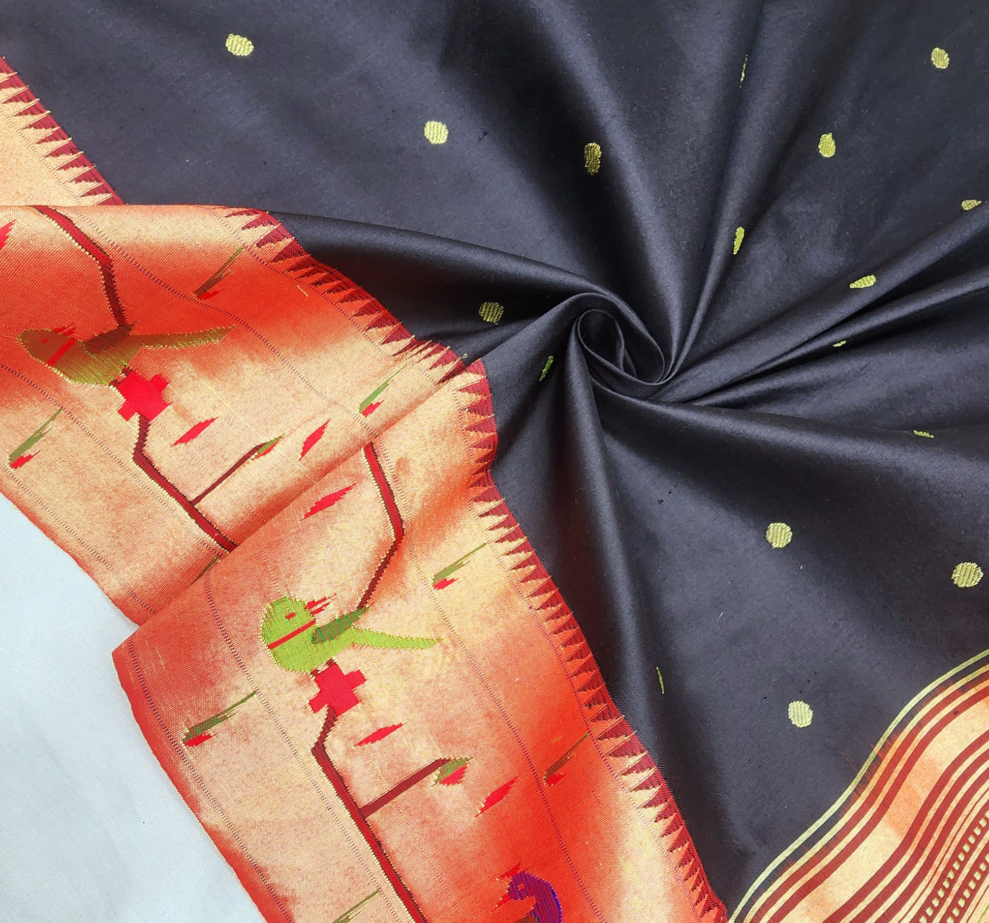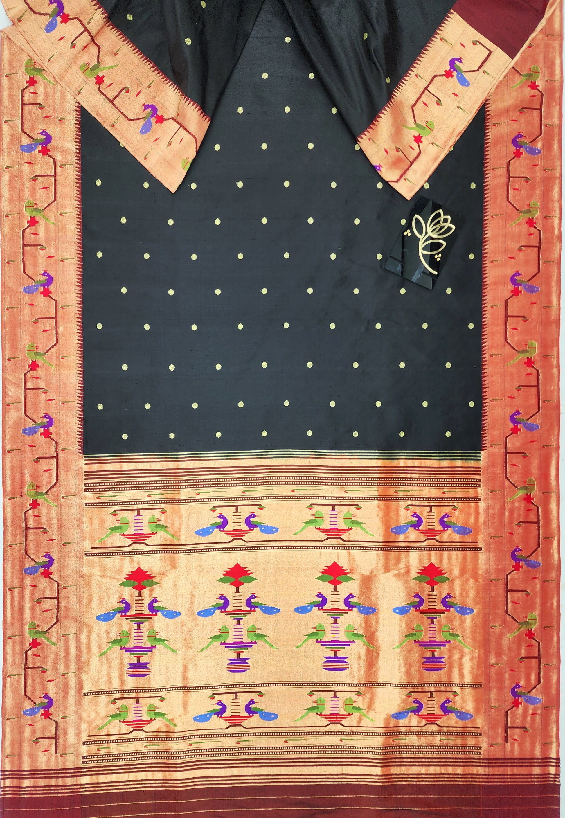 Peacock Parrots Brocade Paithani