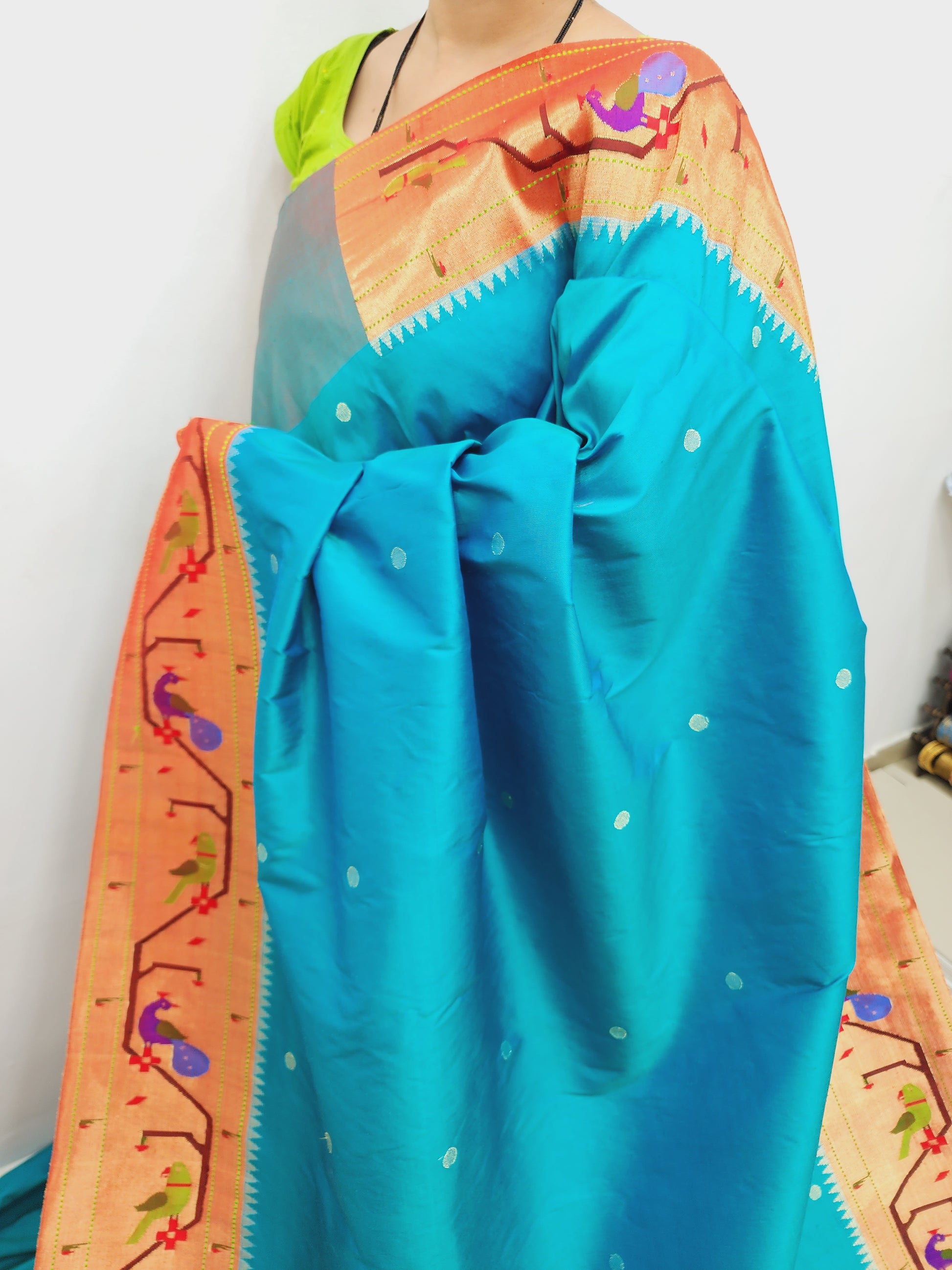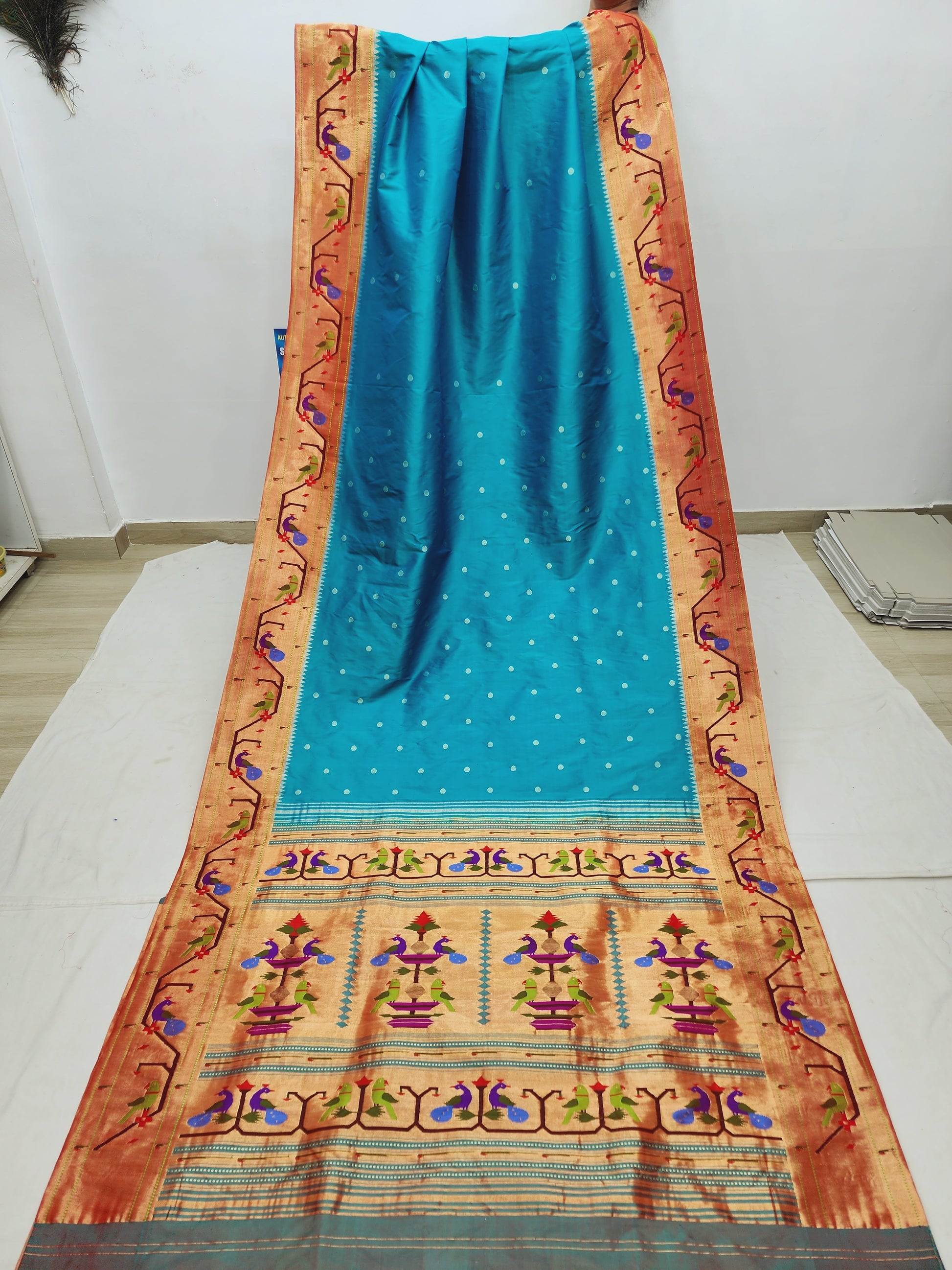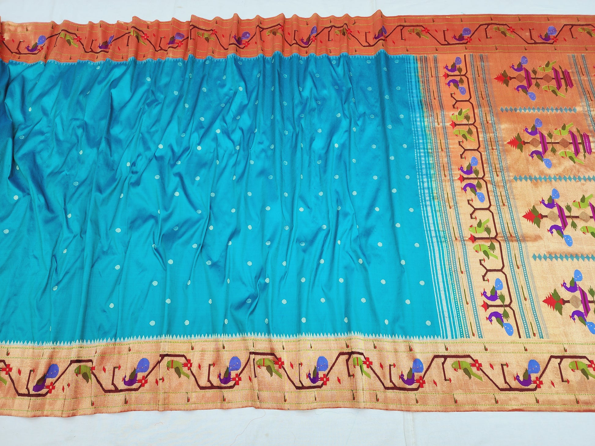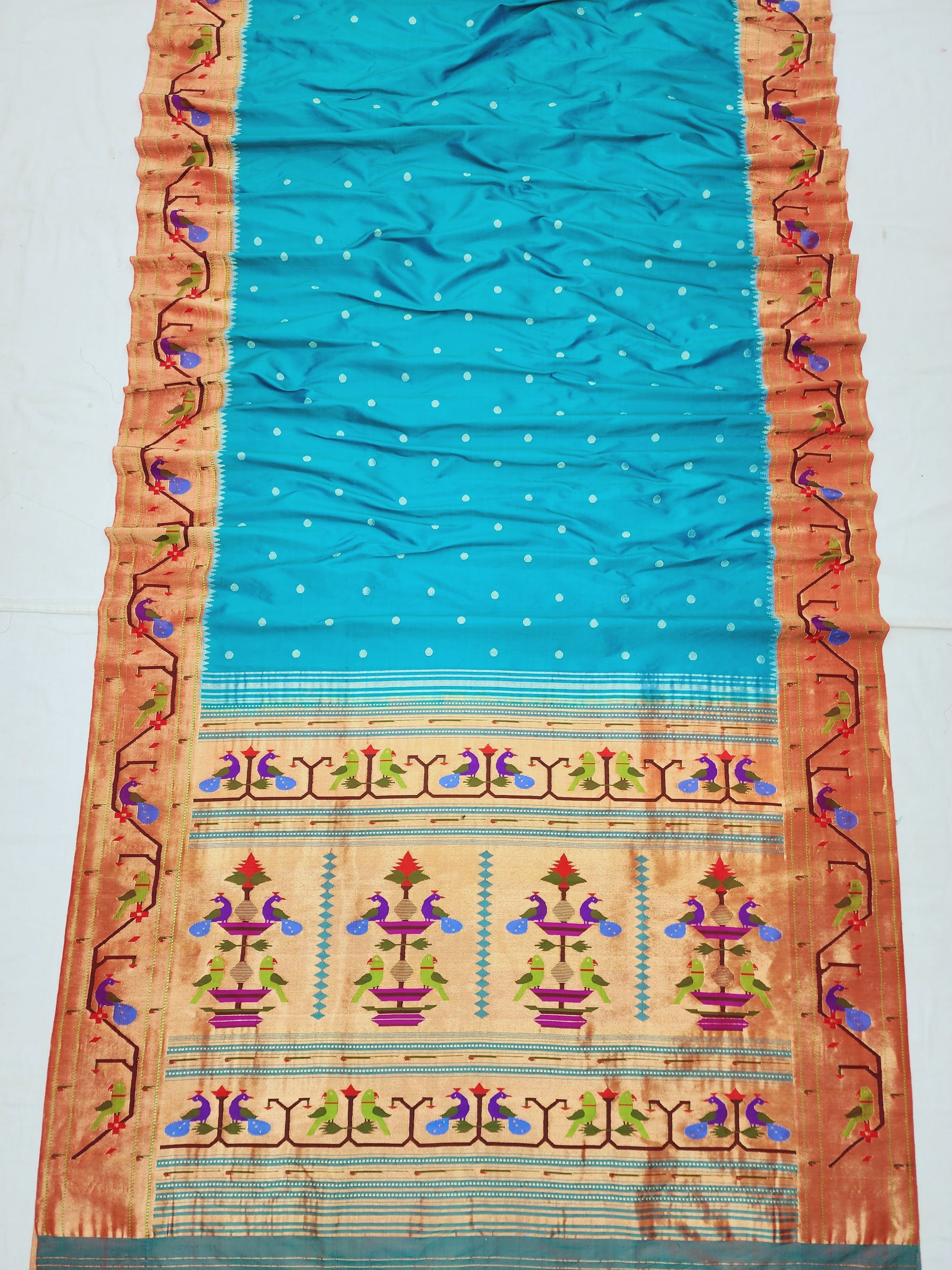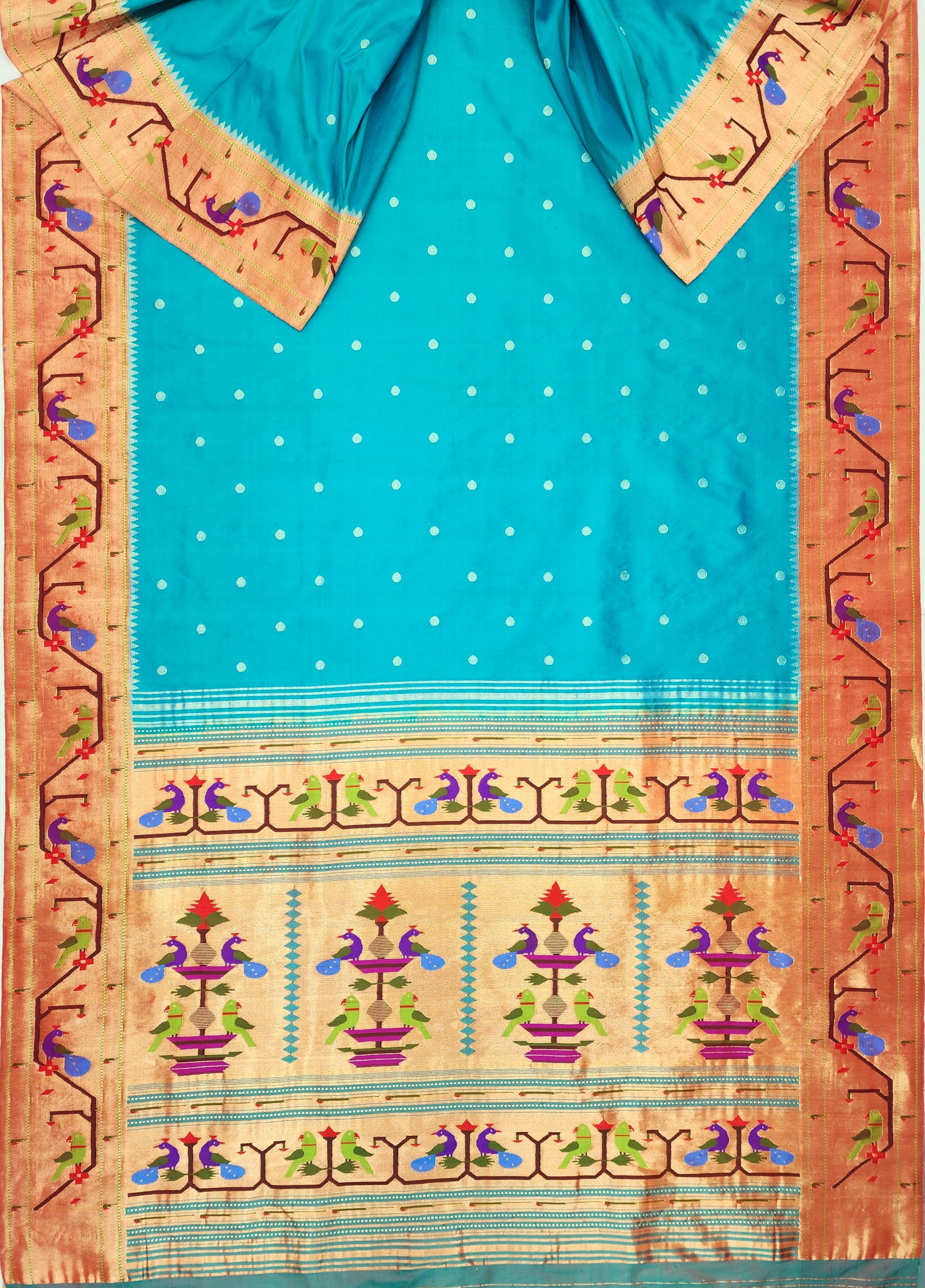 Peacock Parrots Brocade Paithani
