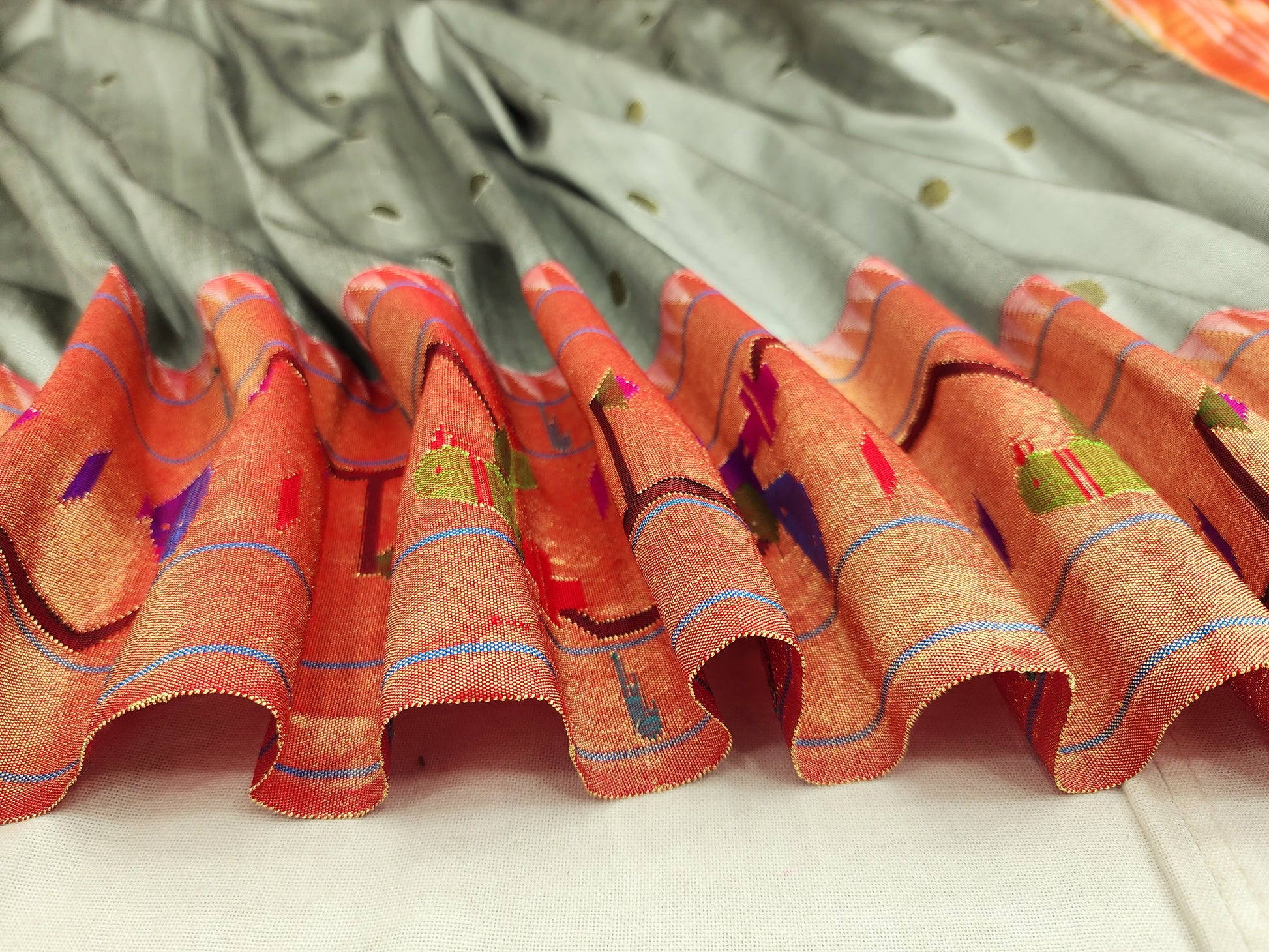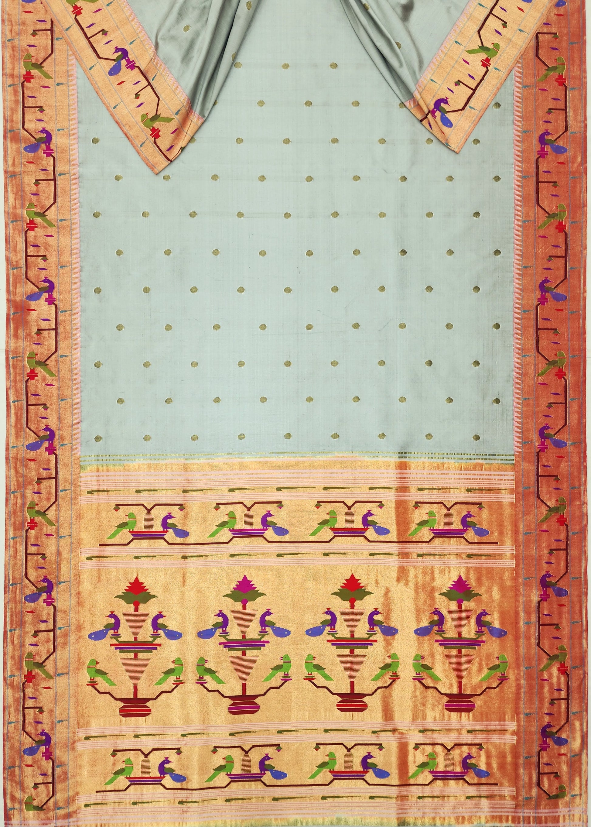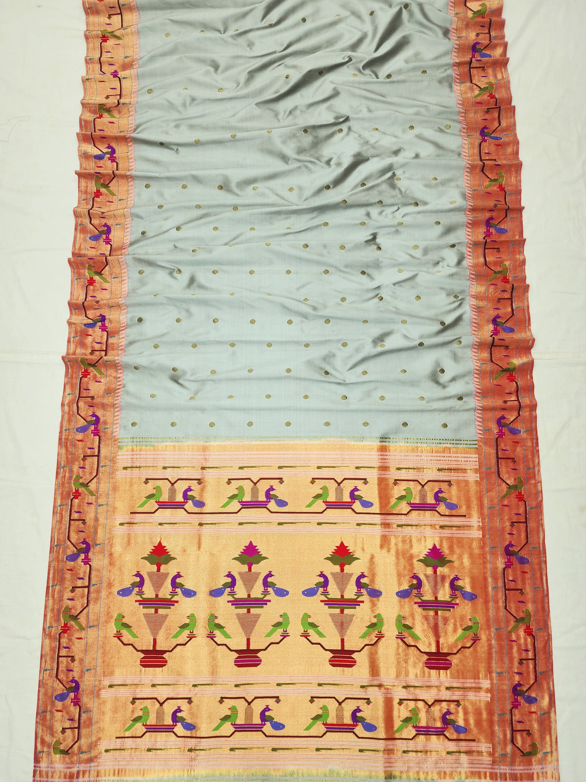 Peacock Parrots Brocade Paithani